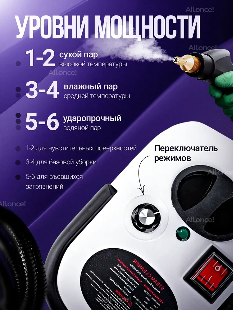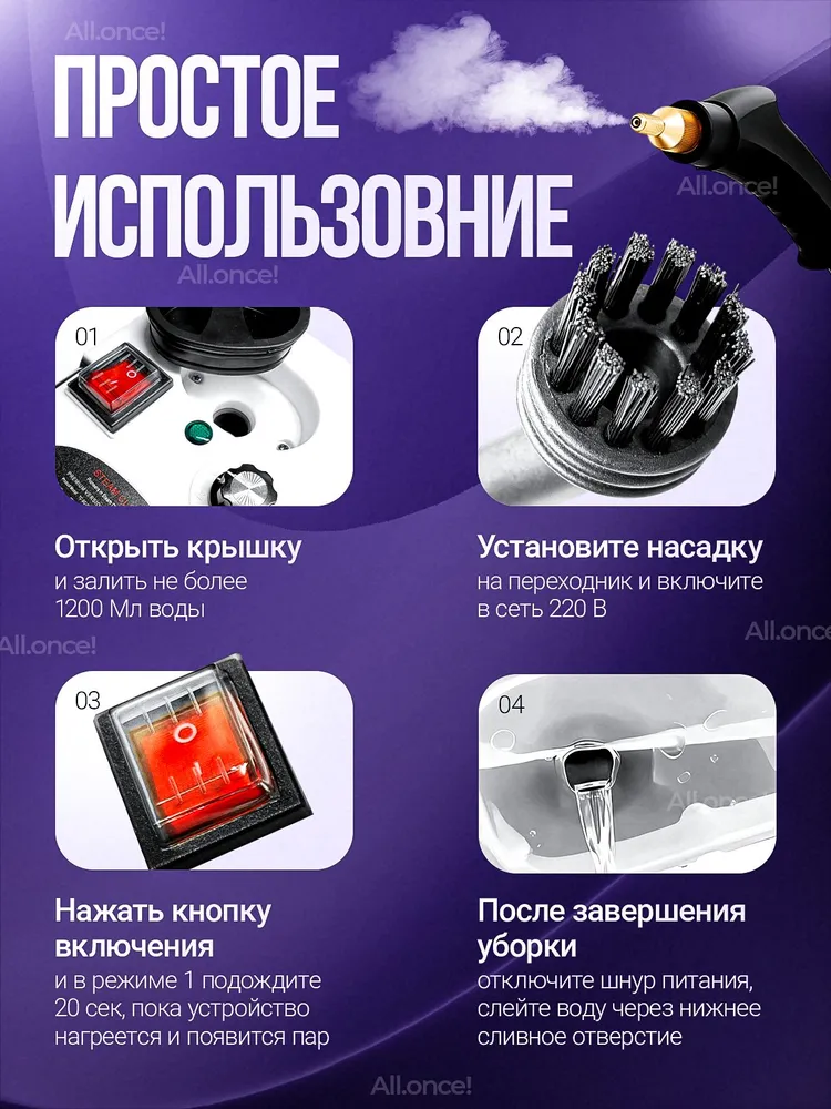 Парогенератор . Новый пароочиститель ручной для дома - это универсальный прибор для бытовой уборки, который позволяет очистить любые поверхности от грязи, пыли и бактерий. Он оснащен мощным парогенератором, который быстро нагревает воду и превращает ее в пар, который удаляет загрязнения без использования химии и дезинфекционных средств.