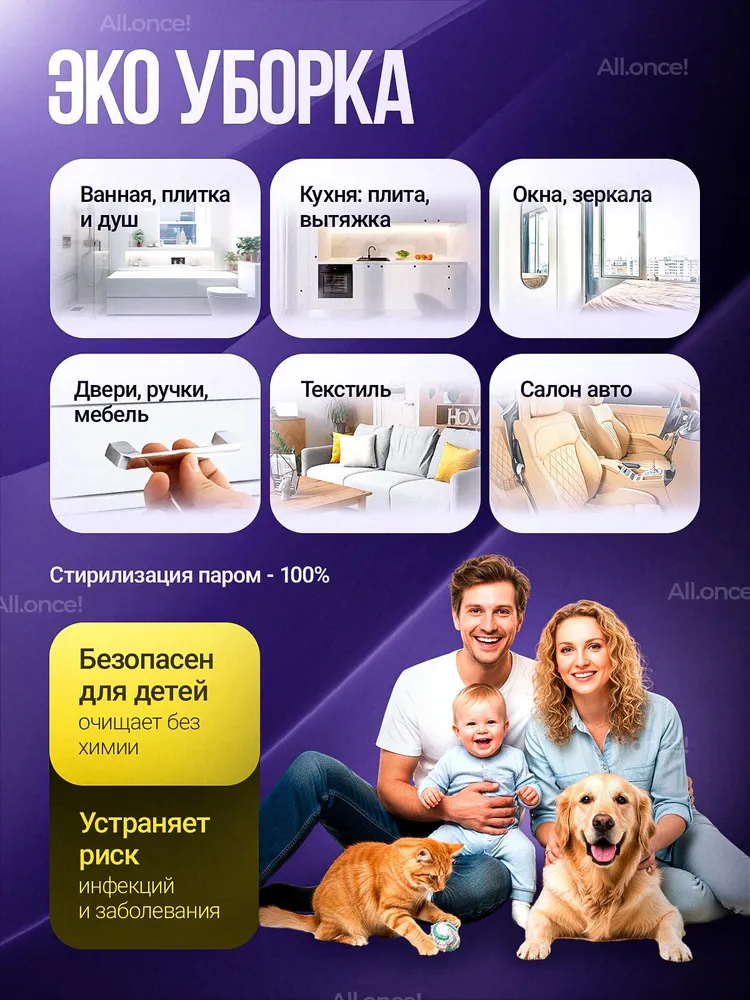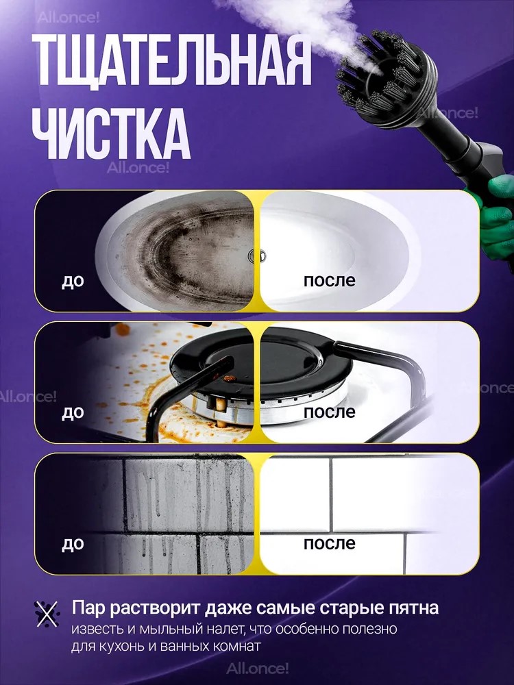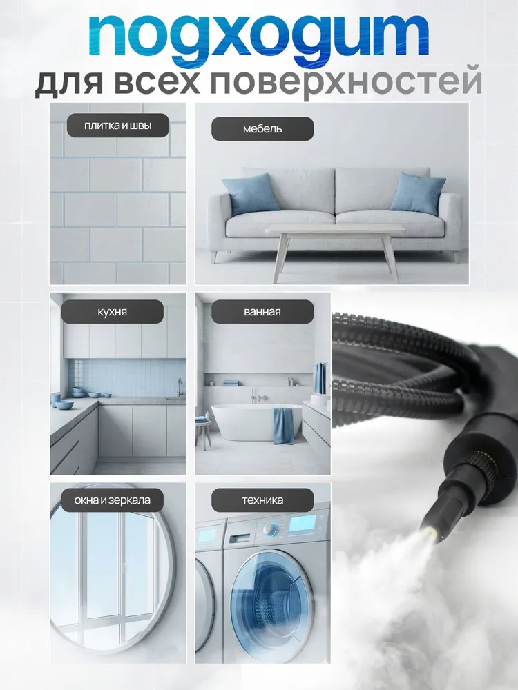 Теперь вам не нужен моющий пылесос. Этот многофункциональный пароотчиститель подходит для очистки кухонных поверхностей, окон, пола, кафеля и мойки, ванны, туалета и кухни. Отпариватель ручной – это универсальный прибор для уборки дома и кухни!